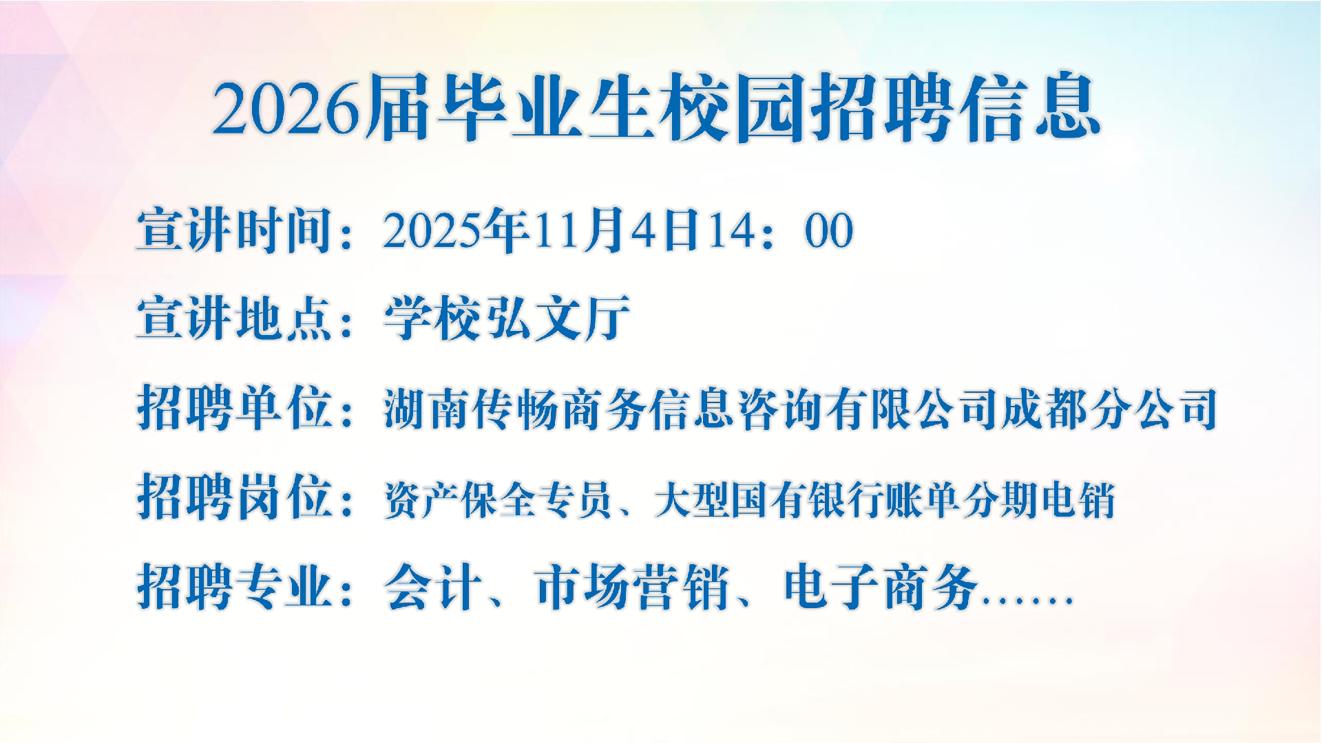 宣讲单位:湖南传畅商务信息咨询有限公司成都分公司