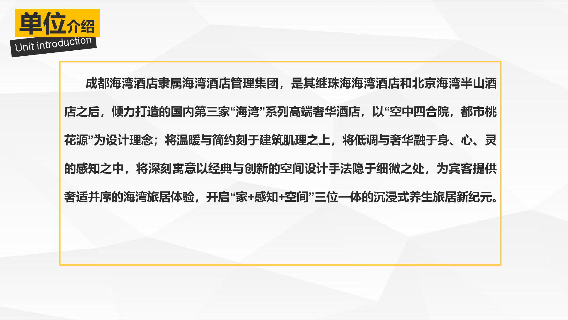 宣讲单位:成都海湾半山酒店管理有限公司